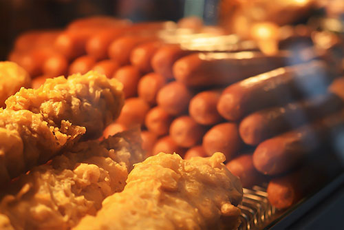 Plain or Battered Sausage (battered) (large) (£ 2.20 ) Plain or Battered Sausage (battered) (small) (£ 1.75 ) Plain or Battered Sausage (plain) (large) (£ 2.15 ) Plain or Battered Sausage (plain) (small) (£ 1.70 )